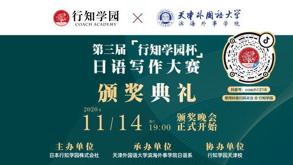 11月14日晚7点,第三届“行知学园杯”日语写作大赛线上颁奖典礼在天津隆重举办。海棠书屋