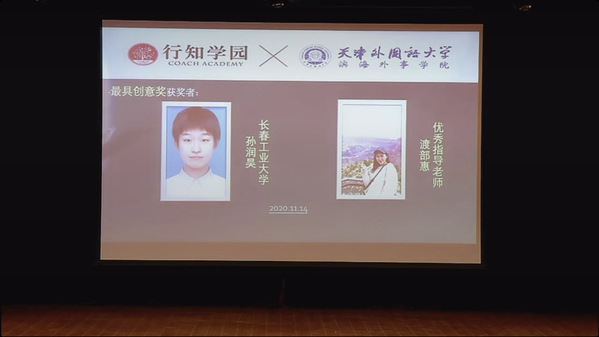 荣获“最具创意奖”的孙润昊同学在颁奖典礼上发表了获奖感言。