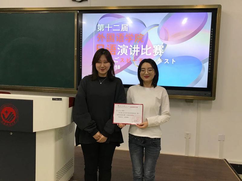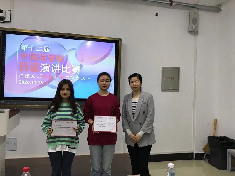 于2020年11月18日下午13时,在北湖东校区教学主楼368教室举行“第十二届日语演讲比赛”。日语系主任曾妍、教师刘小平、金香梅、宋卓时及日籍教师渡部惠担任比赛评委,学生周翔、赵鸿博担任主持人,2018级日语专业7名选手参赛。