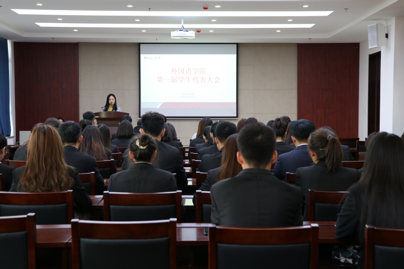 于10月28日在主楼435会议室召开全院学生代表大会。学院党委副书记王颖群,团委书记朱博,学生党支部书记刘明慧及各年级选拔推荐的41名学生代表参加。