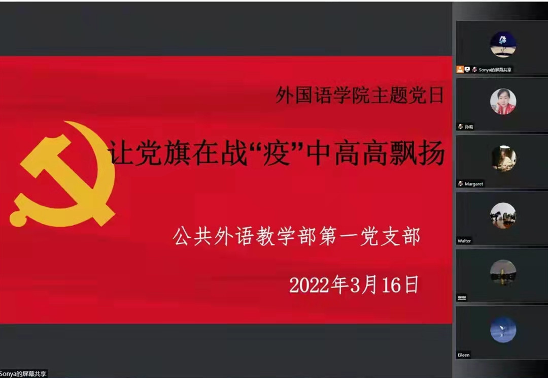 3月17日至18日,各党支部结合当前疫情防控的形势要求和工作实际,组织了“让党旗在战‘疫’中高高飘扬”线上主题党日活动。活动中,各党支部共同学习、研究落实《通知》精神,号召全体党员要充分发挥党员先锋模范作用和党支部战斗堡垒作用,积极做好捐赠助力、志愿服务等工作,克服自身困难,冲锋在前;要严格落实属地管理原则和疫情防控要求,严之又严、细之又细,本着对自身、对全社会高度负责的态度,做到核酸检测应检尽检,不漏一人,全部覆盖。同时,必须做好个人防护,避免交叉感染;学生党员要带头敢于担当、乐观向上、服从指挥和管理,按要求主动参与志愿服务,和学校一道,战胜疫情,拥抱春天。同时,各党支部还利用主题党日契机,深入了解全院教师居家情况、教学情况、存在的困难,并就抓好BTX系统建设等工作进行了布置和要求。