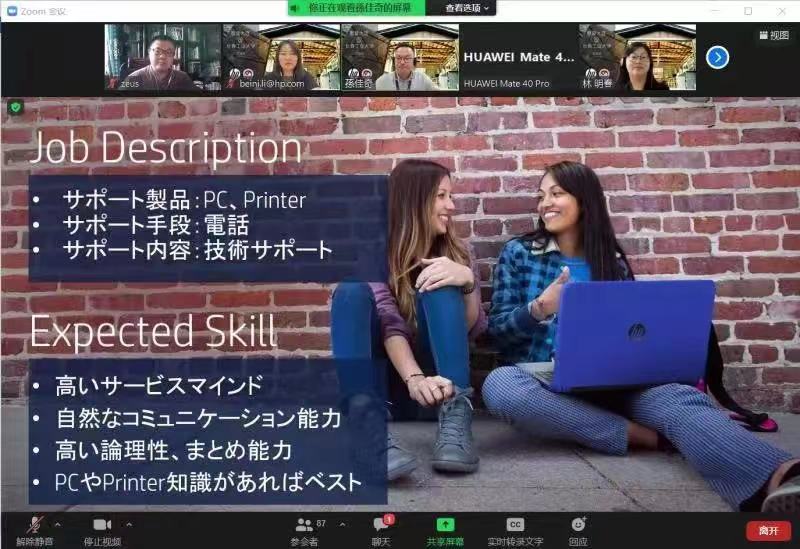 于7月6日,特邀惠普大连分公司日本部经理孙佳奇、日本质量管理部文化指导老师林明春,通过ZOOM平台为海棠书屋