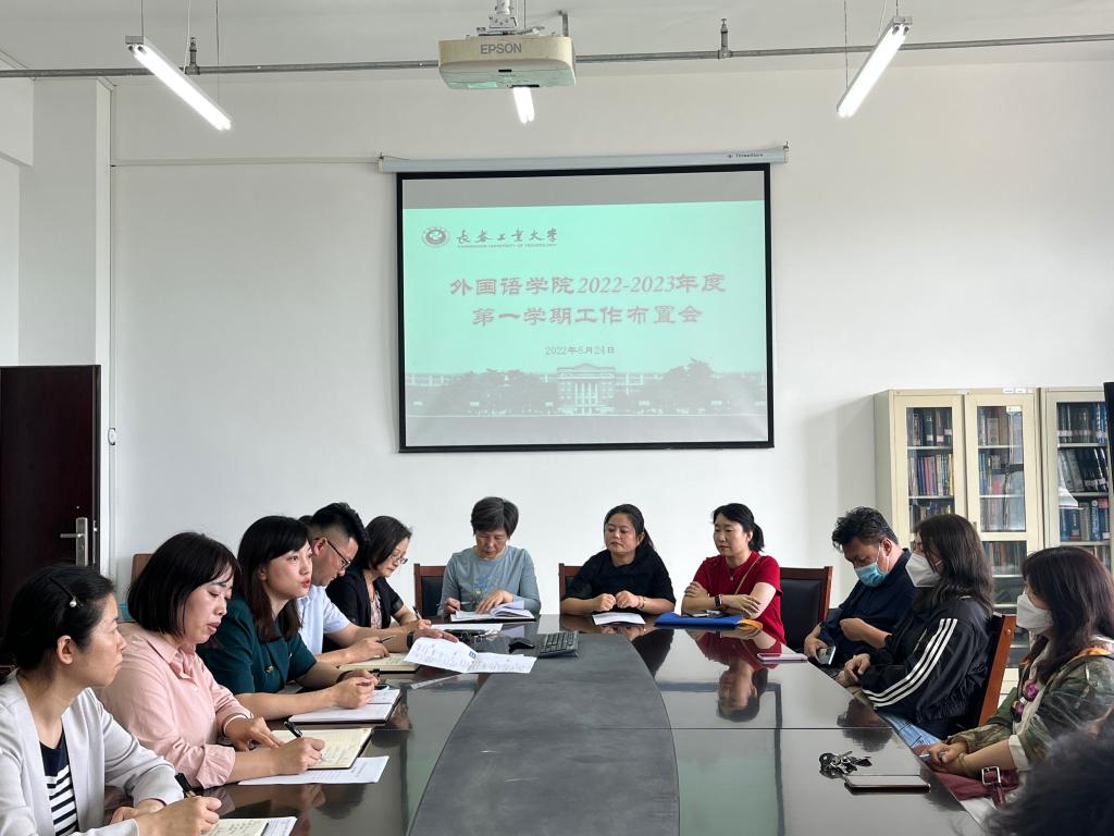 新闻网讯(通讯员 刘明慧)8月24日,学院召开新学期工作专题会议,就2022年秋季学期老生返校、新生开学报到,以及新学期疫情防控、学院建设、课程教学等进行了工作部署。学院班子成员、各系部党支部书记、主任、副主任,语言训练中心成员、办公室成员参加会议。