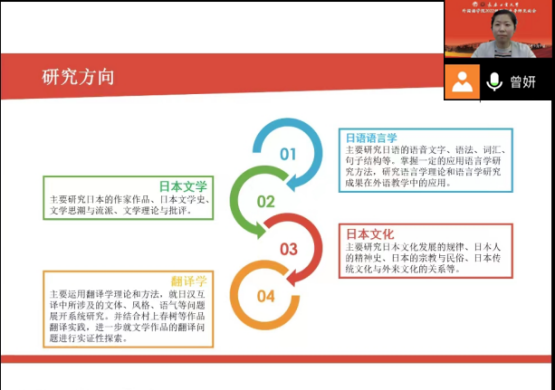 副院长曾妍为日语语言文学专业的2022级硕士研究生进行新生入学教育。首先,曾妍老师对海棠书屋