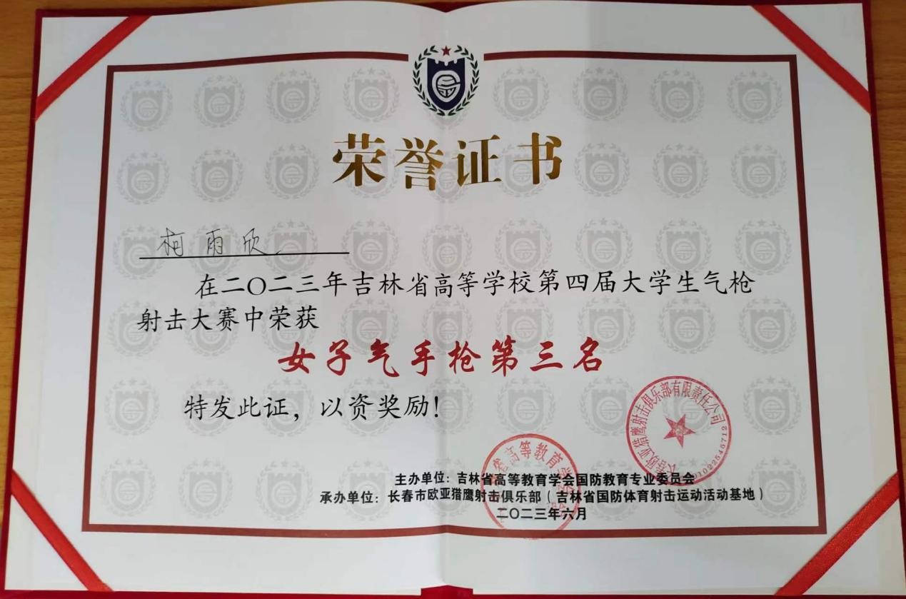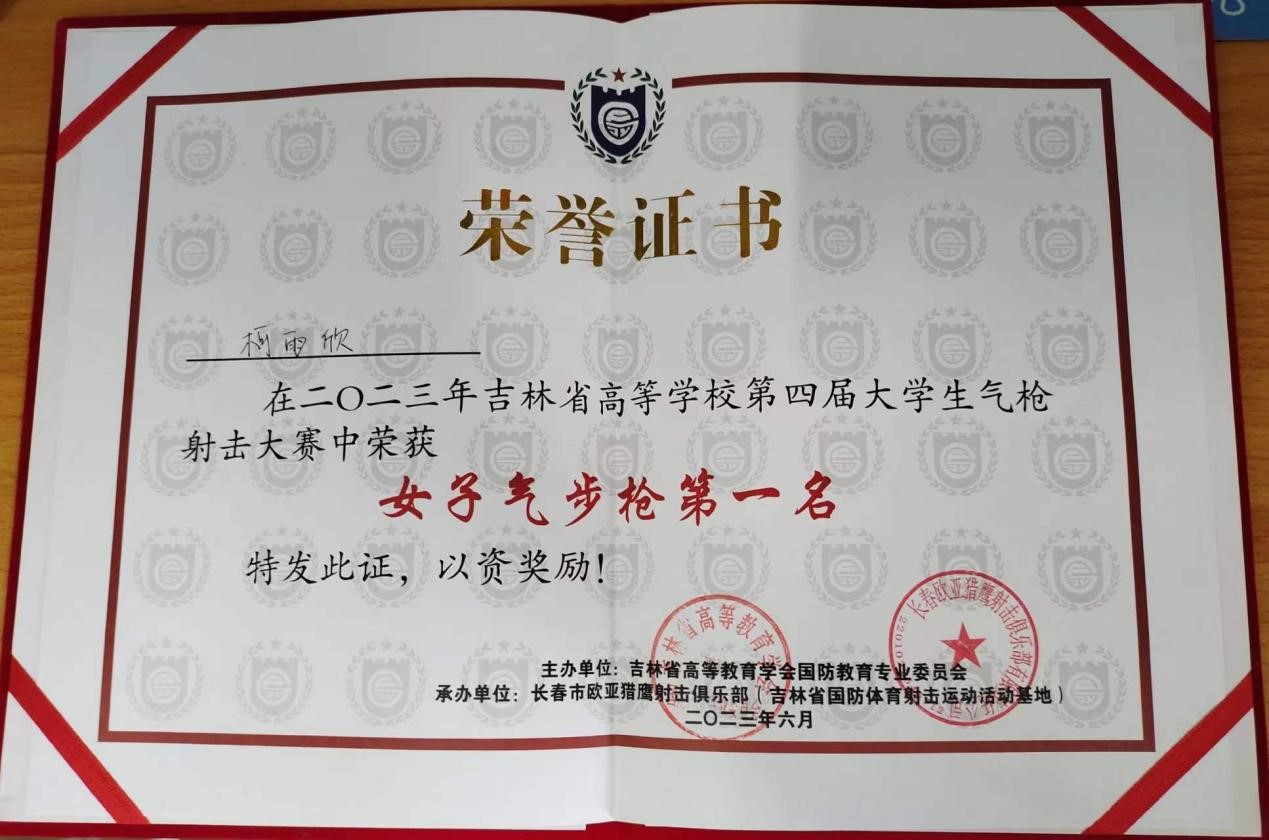 柯雨欣同学参加本次比赛并取得女子气步枪第一名和女子气手枪第三名的好成绩。