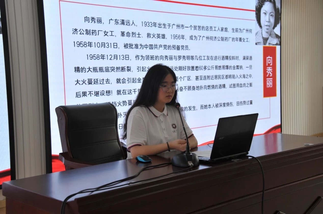 李杭霓讲授的主题为“学习青年英模,展望未来生活”。讲授的过程中利用陈乔年、赖宁等青年英模的事迹感染学生,希望他们能树立远大理想。作为一名青年团员,我们要主动向模范学习。学习他们坚守初心不改本色,始终保持着对党的忠诚,传承红色基因,锤炼对党忠诚、忠于人民的优秀品质。学习他们淡薄名利,矢志奉献,传承英雄模范以人民为中心的原则,扎根基层,默默奉献,从不计较个人得失,一心把人民放在心尖的发展理念。