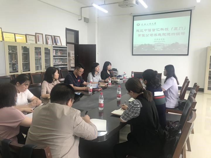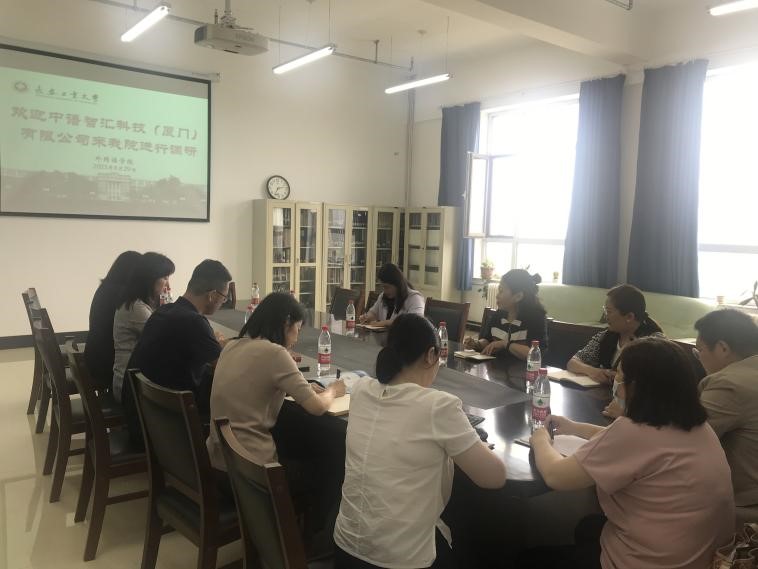 王轶院长首先代表学院对中语智汇科技(厦门)有限公司的到访表示热烈的欢迎,并从学院基本情况、学科建设、师资力量等情况进行了详细介绍。其次,李秀文院长就学科优势特色等方面分别介绍海棠书屋