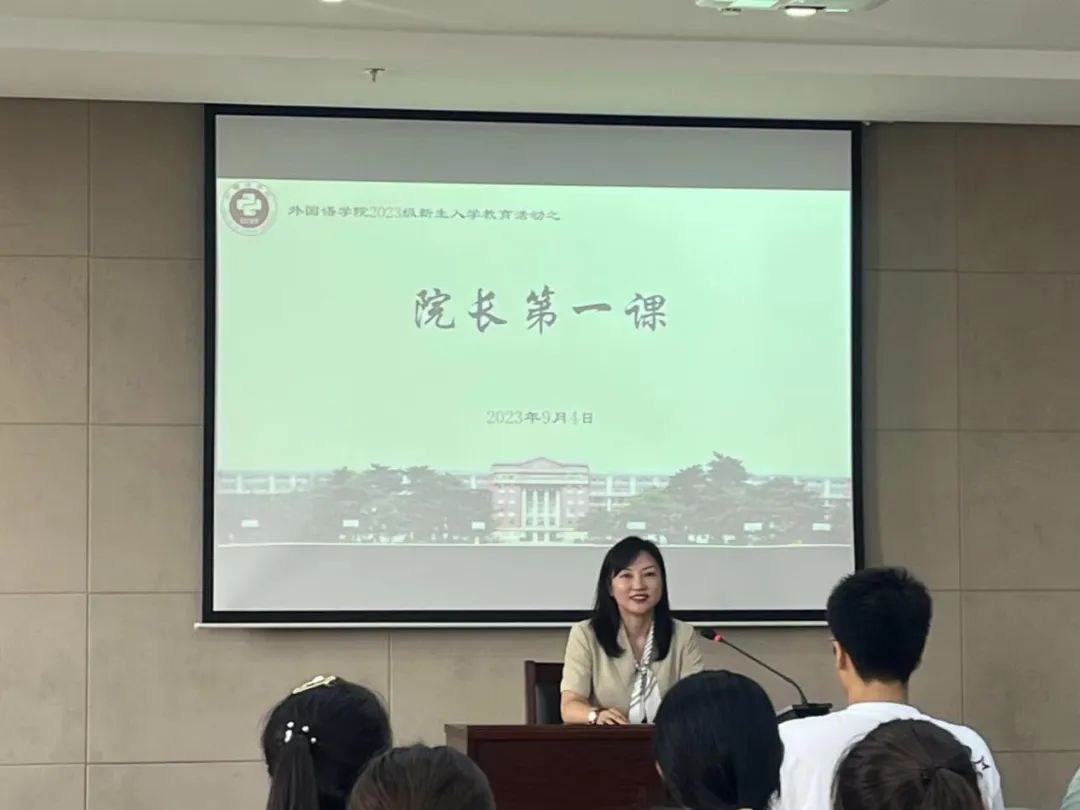 院长王轶对新生们进行院景介绍。她首先对新生的到来表达了热烈的欢迎与祝贺,并对新生的大学生活进行展望。王轶院长围绕“海棠书屋