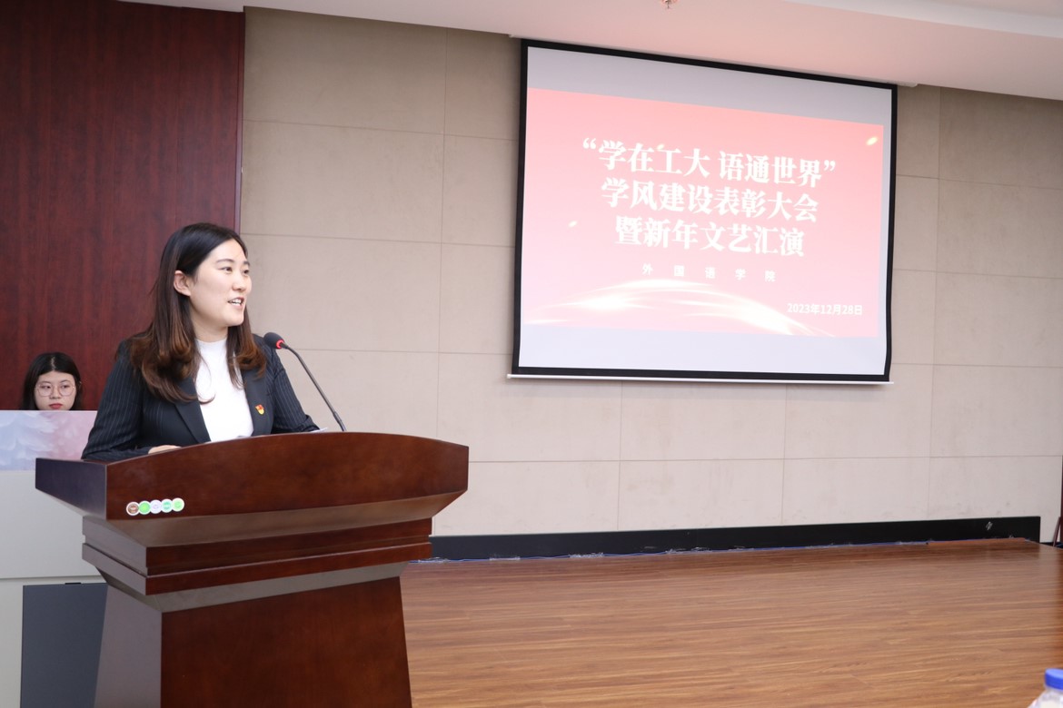 在12月28日于435会议室开展了“学在工大,语通世界”学风建设表彰大会暨迎新年文艺汇演。参加本次会议的领导、嘉宾有海棠书屋