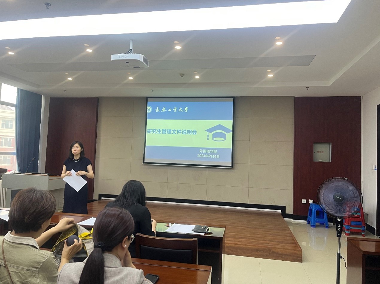 研究生管理文件解读说明会在北湖东区教学主楼435会议室召开,院长王轶、党委副书记刘凤利、副院长李秀文、曾妍、全体研究生导师及2024级研究生参会。会议由副院长曾妍主持。