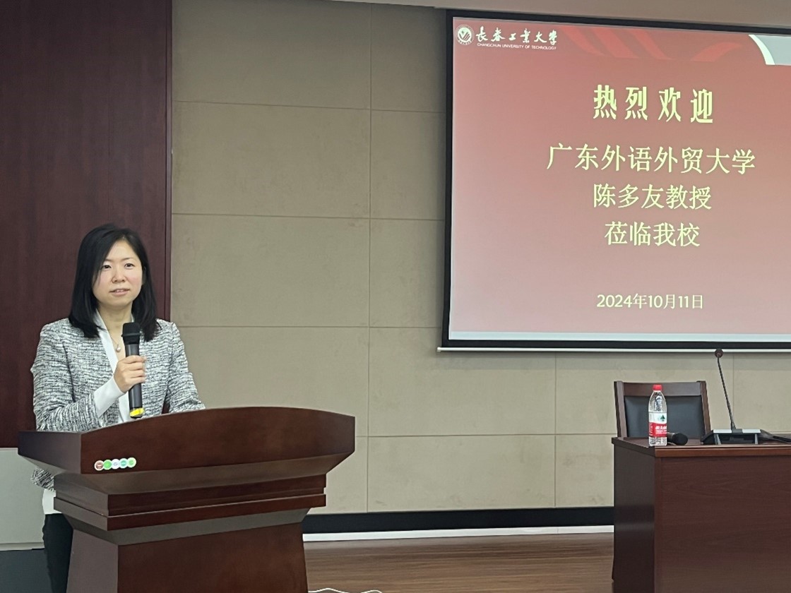 首先,院长王轶对广东外语外贸大学陈多友教授的莅临表示热烈的欢迎并做了隆重介绍。