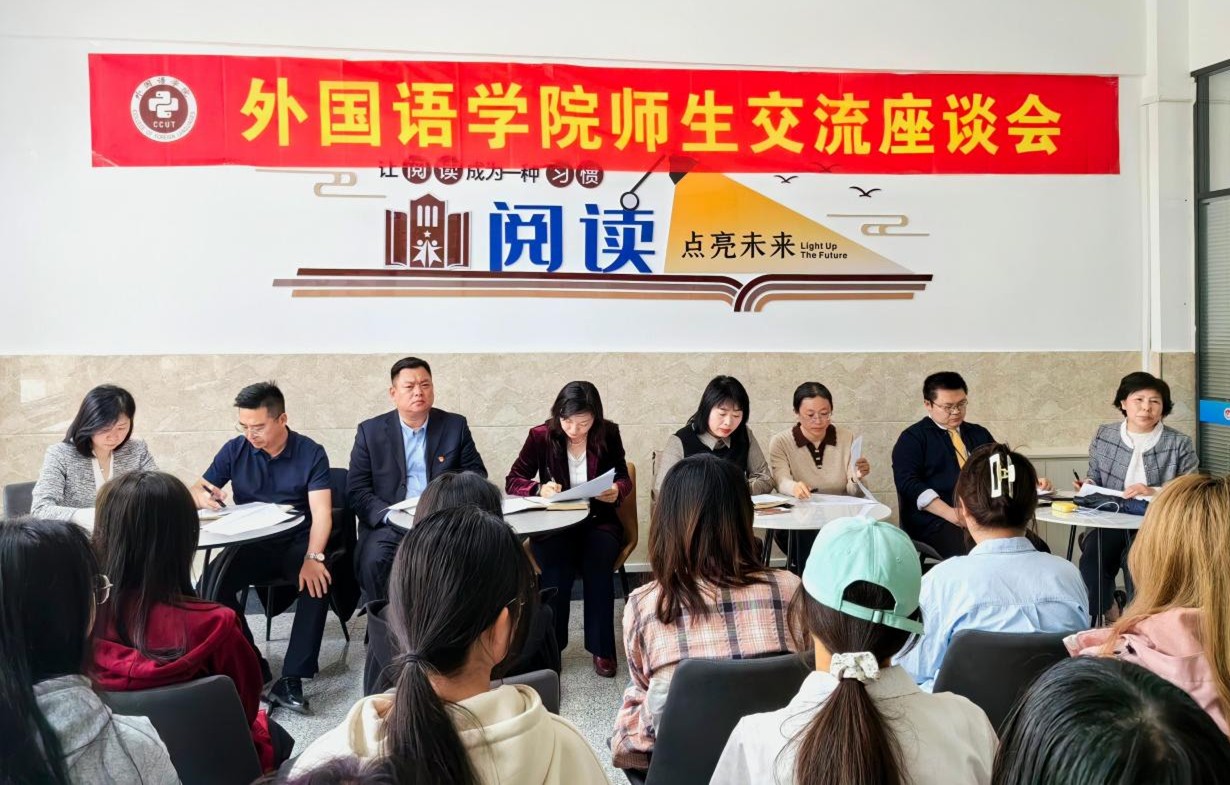 在北湖东区湖畔社区举行2024-2025学年第二学期师生交流座谈会。学院党委书记张子宇、院长王轶、党委副书记刘凤利、副院长李秀文、副院长曾妍、英语系主任刘宇、日语系主任宋卓时、俄语系主任张美以及各班学生代表参加了本次座谈会,会议由李秀文主持。