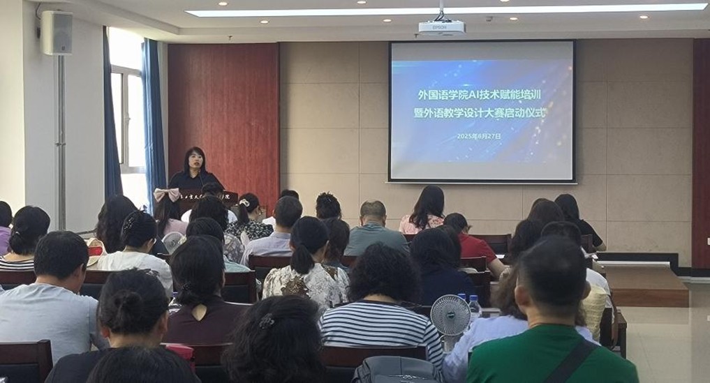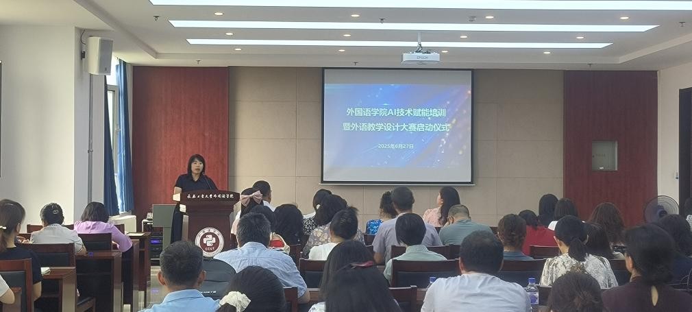 举行了AI技术赋能培训暨外语教学设计大赛启动仪式。本次活动旨在推动人工智能技术与外语教育的深度融合,标志着学院在智能化教学改革征程中迈出关键一步。学院党政领导班子成员和学院全体教师参加会议。启动仪式由副院长李秀文主持。