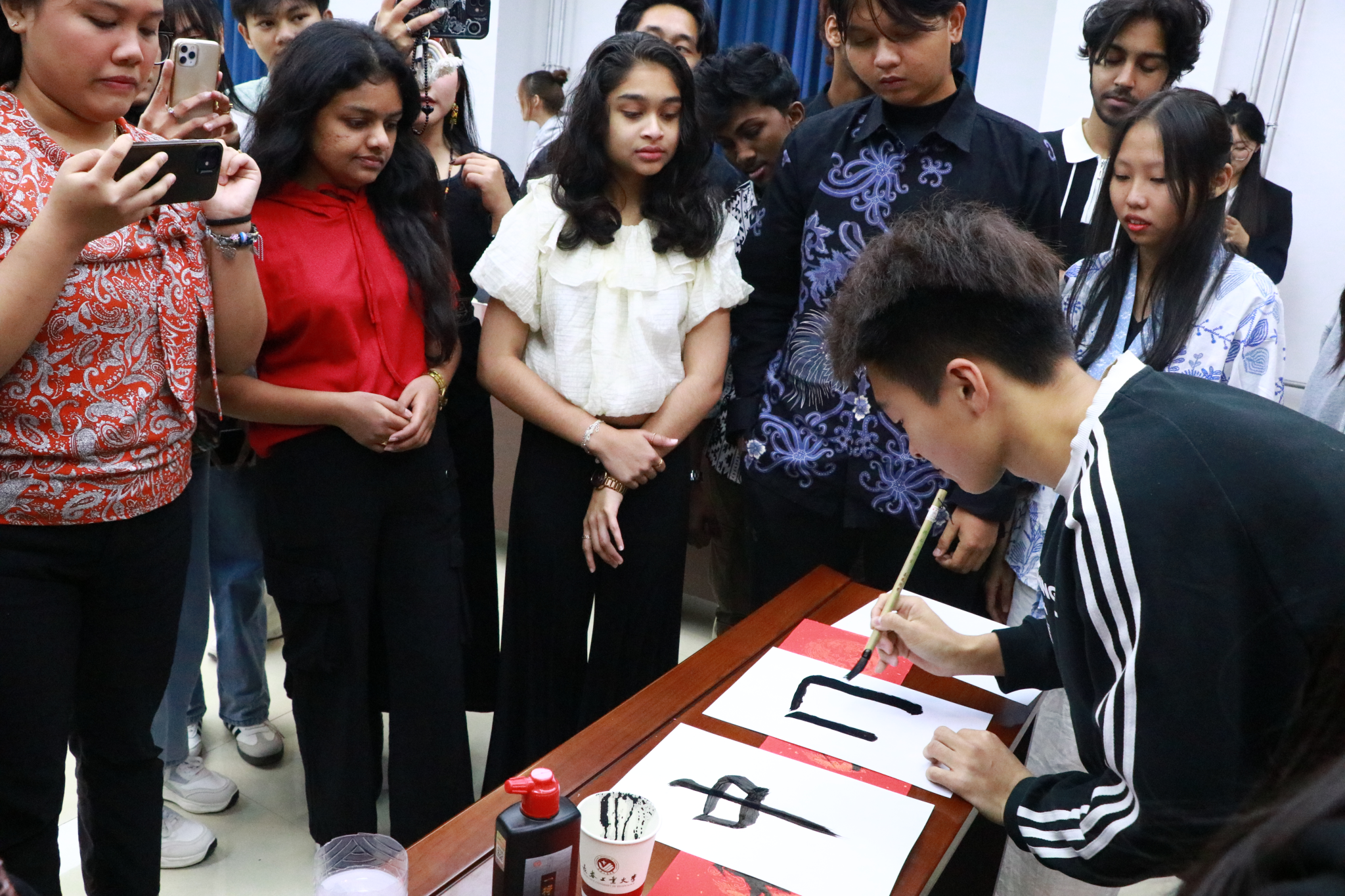 学子与留学生们携手开启一场精彩和谐的文化交流之旅,在互动中让文化共鸣不断升温。