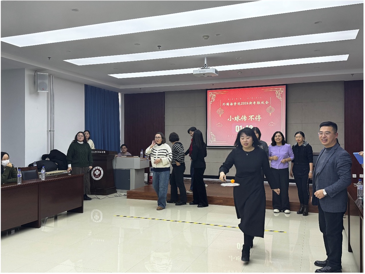 饺香暖冬,礼赠温情。游戏环节结束后,教师们齐聚食堂教职工餐厅,共同参与包饺子活动。大家自发分工、巧手协作,在融洽的氛围中交流过去一年的教学心得与生活感悟,畅谈对2026马年的美好期待,欢声笑语驱散了冬日寒意。学院为参与教师准备了精美奖品,承载着对教职工辛勤付出的认可,也寄托着“马年顺遂”的诚挚祝愿,暖意融融,情满外院。