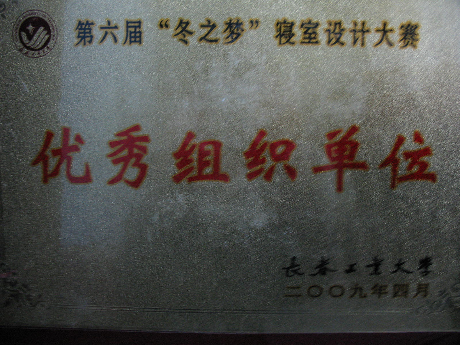 第六届“冬之梦”寝室设计大赛“优秀组织单位”称号。