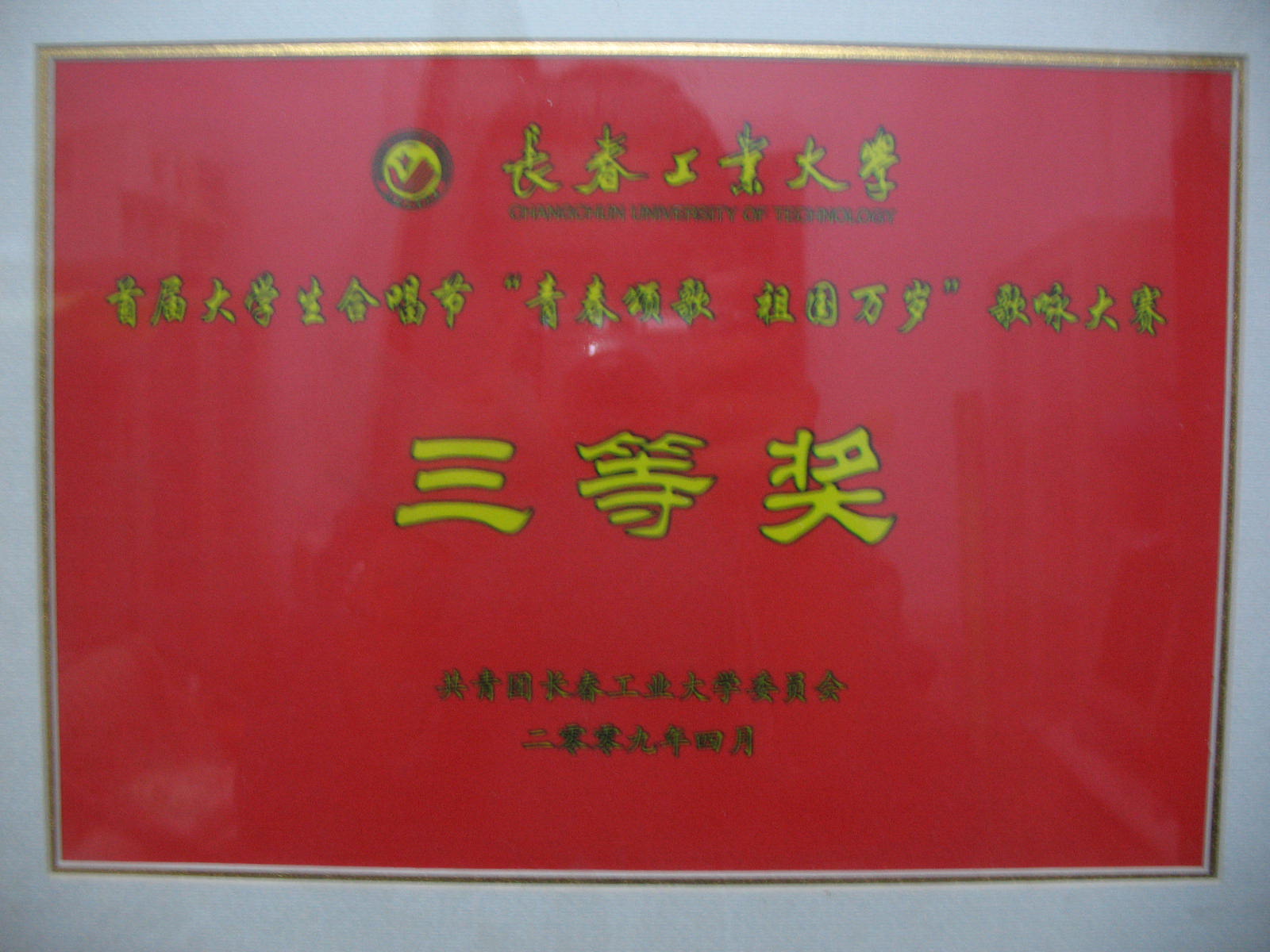 获得大学生合唱节“青春颂歌 祖国万岁 ”歌咏大赛三等奖。