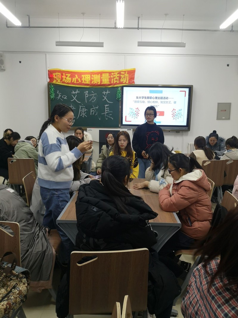 朋辈心理辅导站特在北湖东区主楼374、366室展开“朋辈互助,倾心相伴,知艾防艾,健康成长”主题女大学生朋辈心理辅导活动。该活动由赵君、王颖群、刘明慧老师指导,孙润昊等同学负责组织,18级19级女大学生同学积极参加。