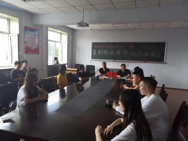 于学院会议室召开了2019年度暑期返校思想动态座谈会。本次会议旨在及时了解学生思想动态以及对学校新学期工作的意见和建议。会议由海棠书屋